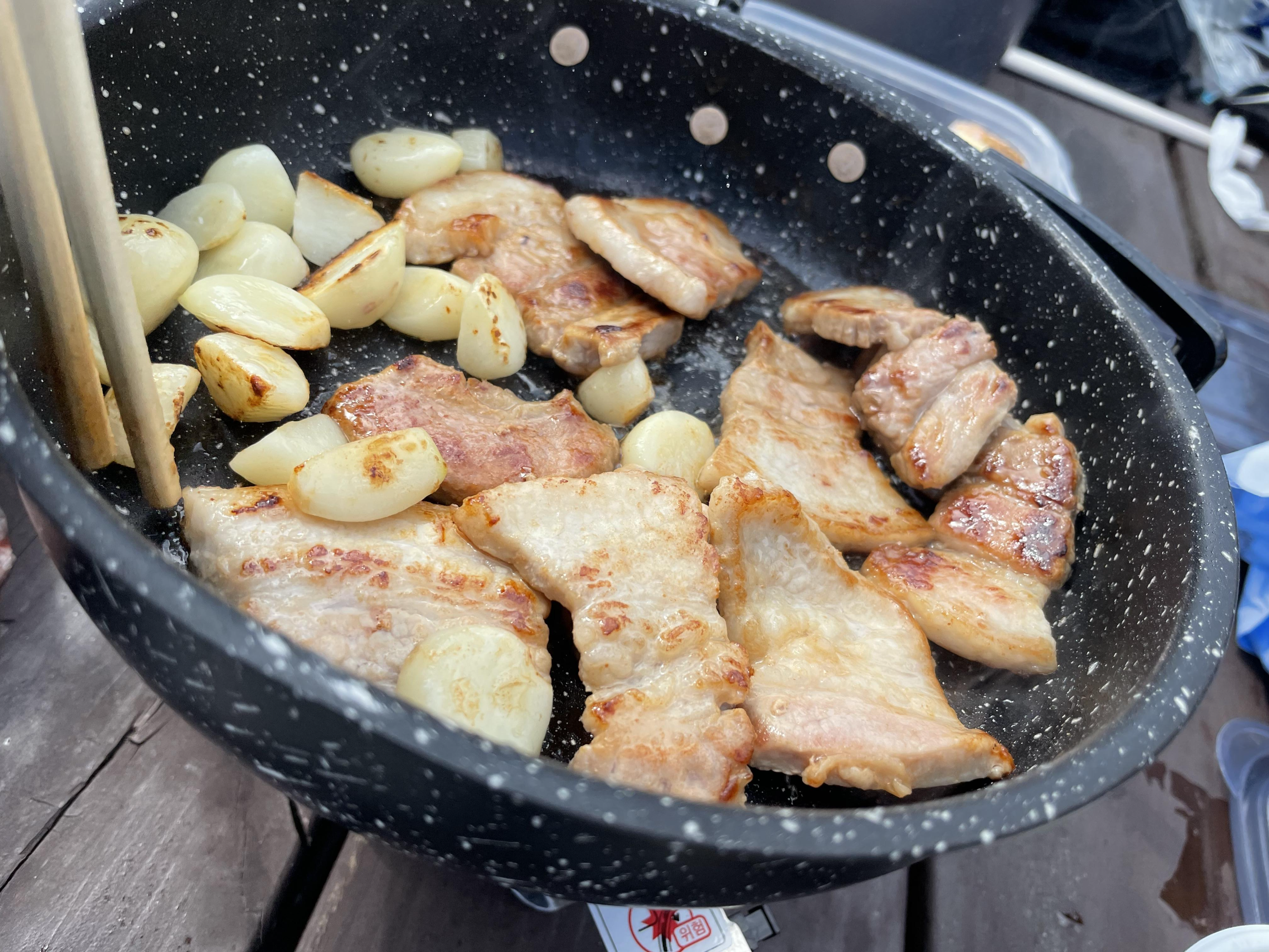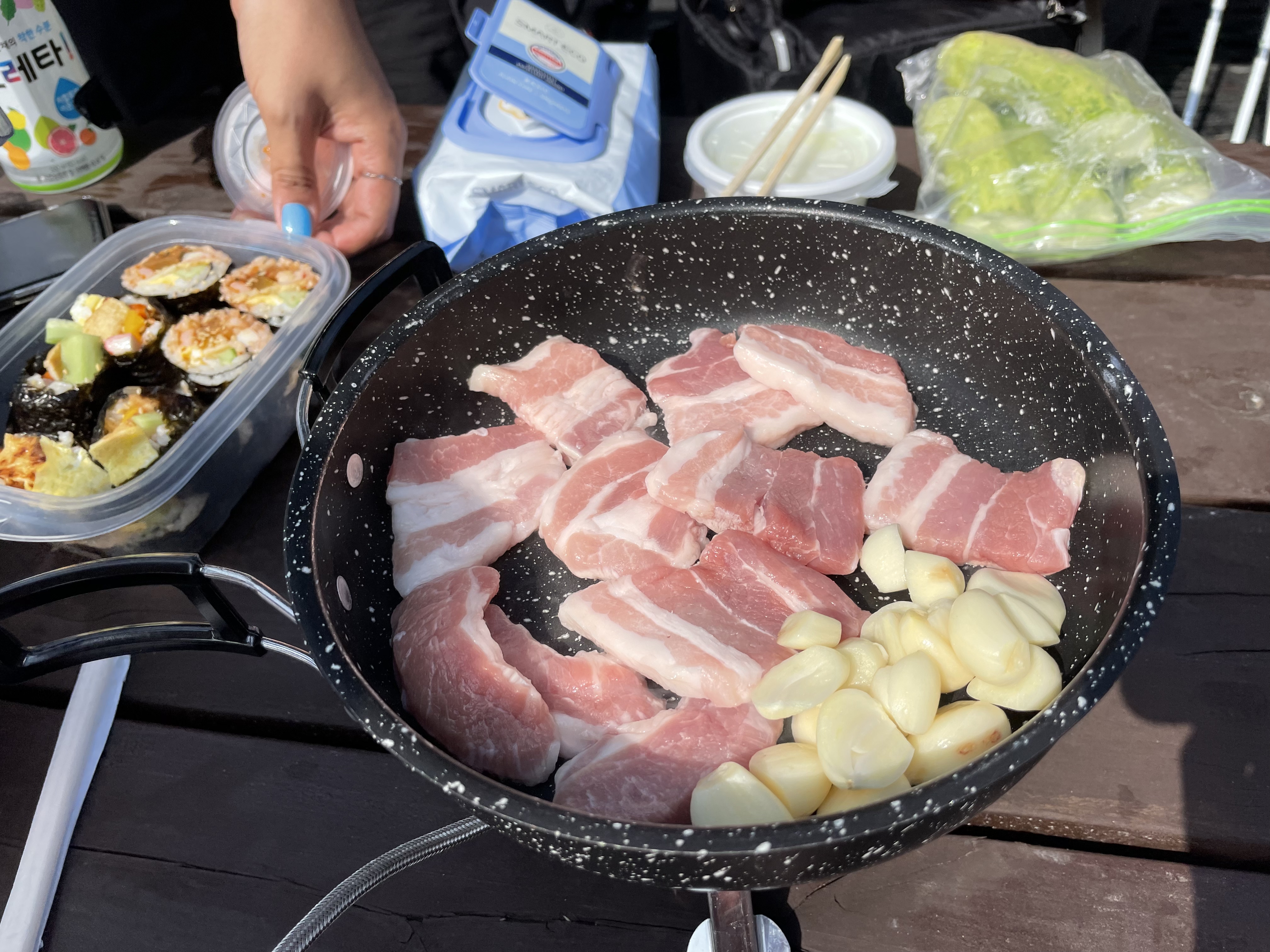 라고 하는 말이 계속 귀에 맴돌아서 참석하게 됐는데, 진짜 대피소에서 삼겹살을 구워 먹었다.(먹거리 2번)