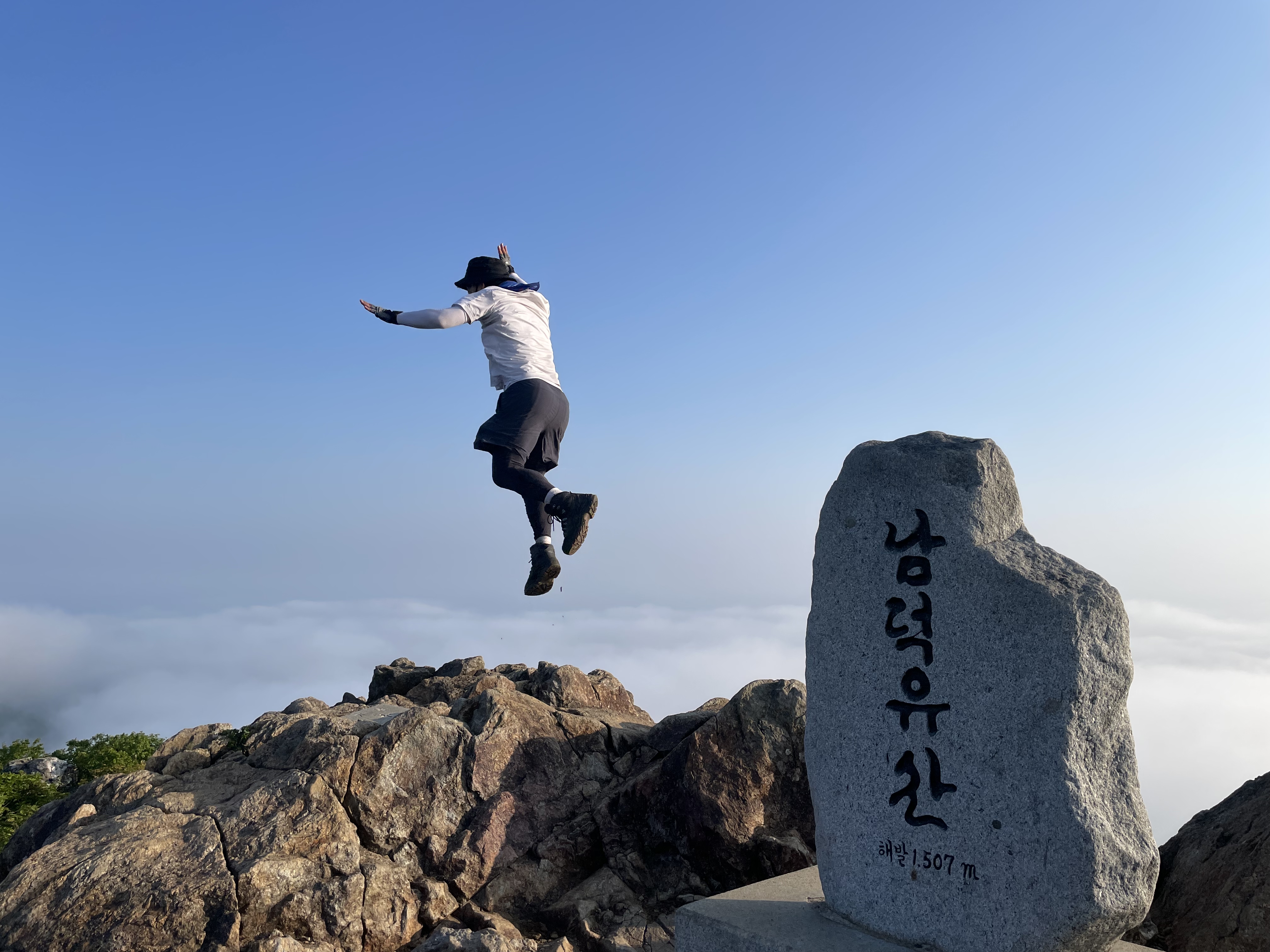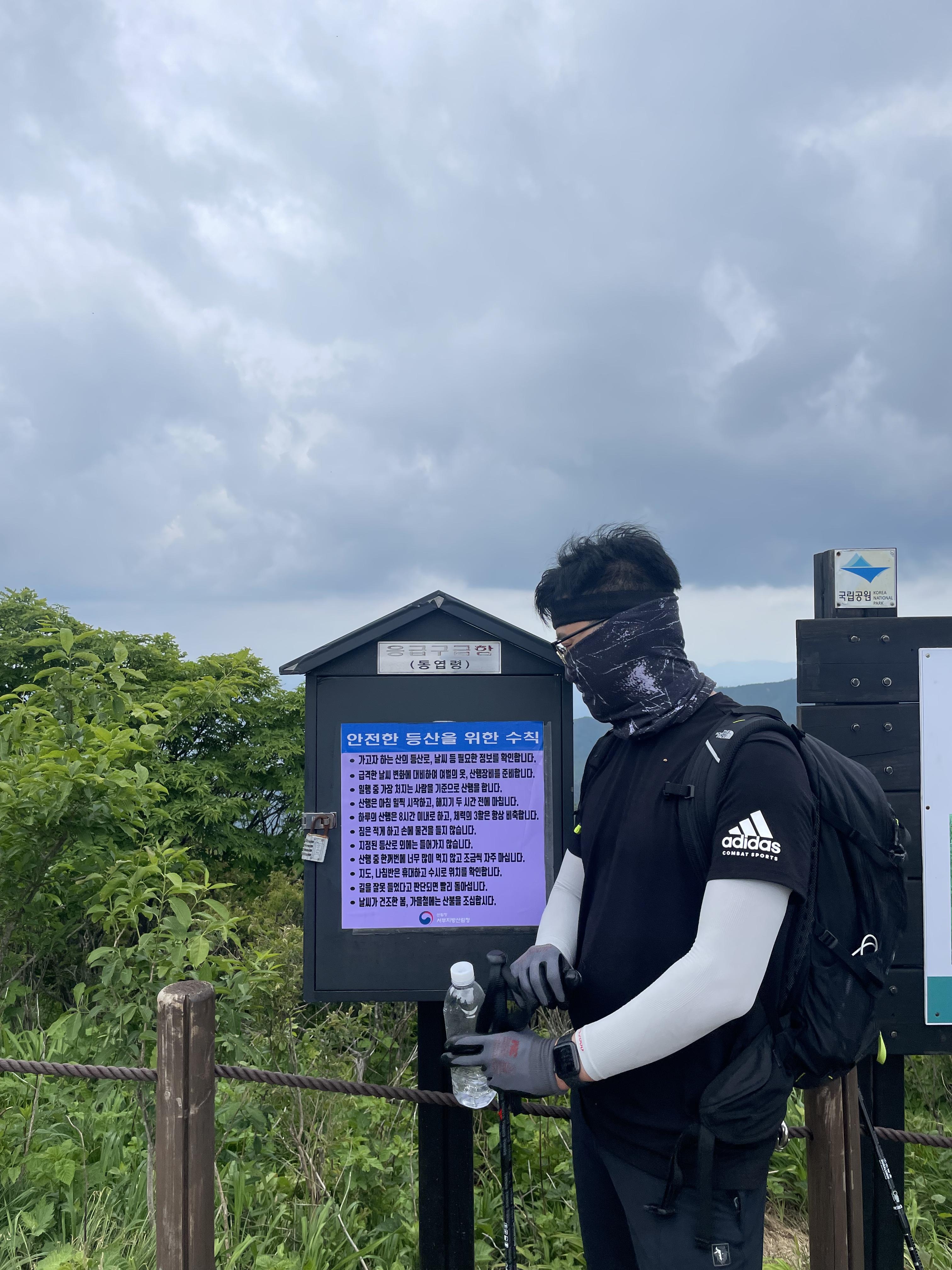 - 산행용품 : 등산가방(38L), 스틱, 페이스쉴드, 헤어밴드, 기능성 수건, 팔토시, 여분 양말, 코팅장갑, 손전등, 여분 티, 반바지, 바람막이
