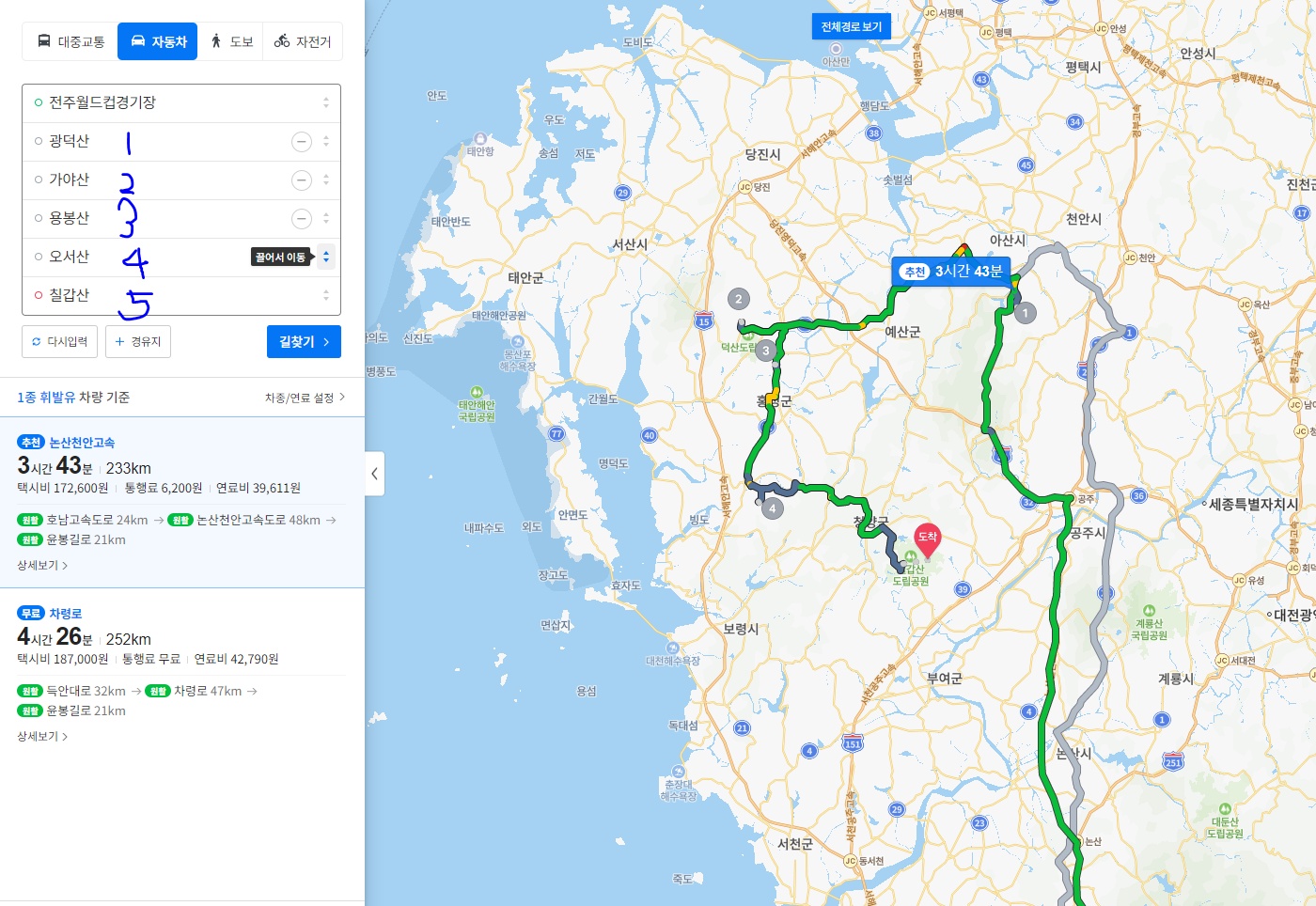 오전 5시에 기상해 전주에서 6시에 출발했다.