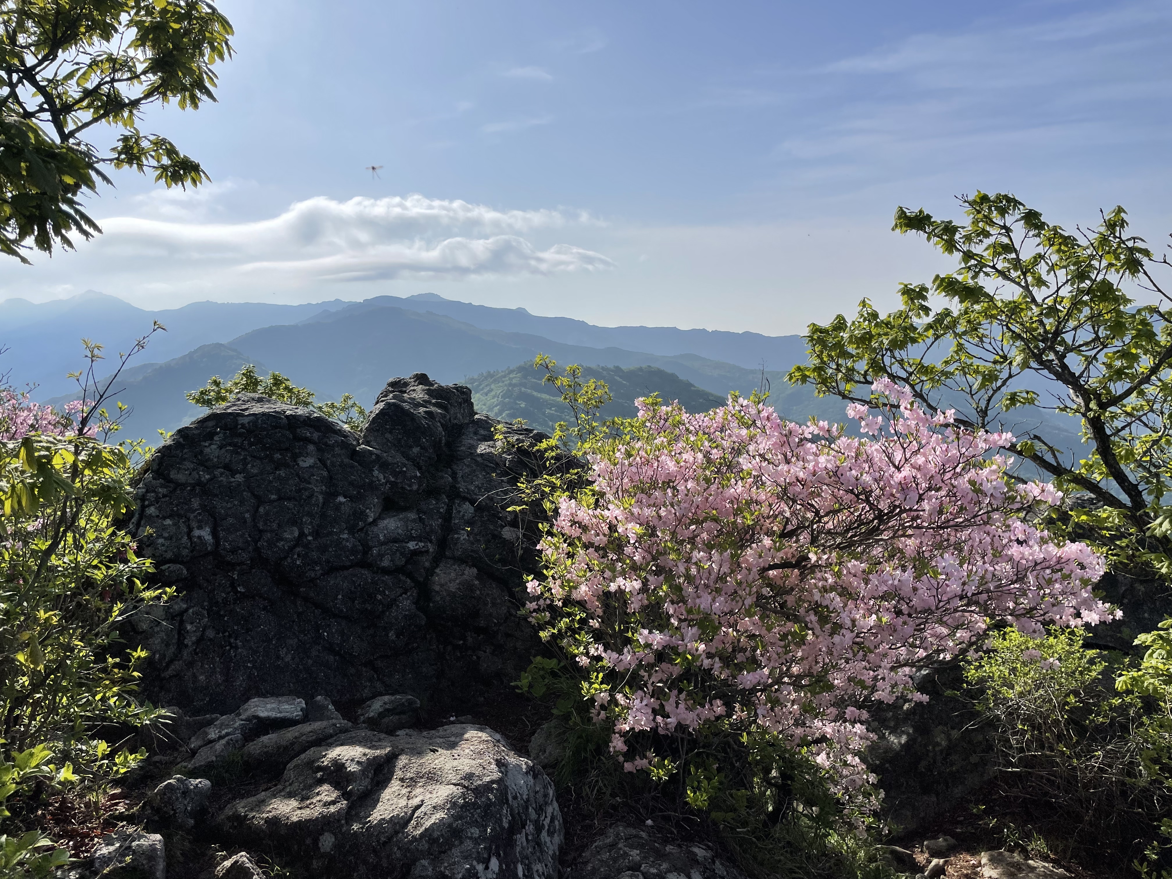 해가 뜨니 너무너무 졸려서 삼도봉 지나 30여분 가던 길에 평탄한 바위가 있어